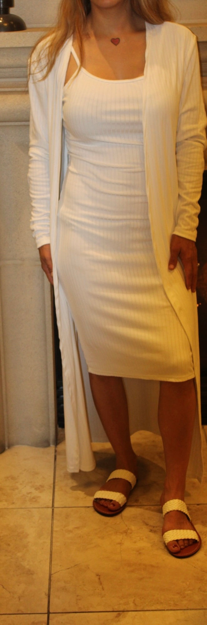 Fresh and trendy, this two-piece set is perfect for any occasion. Known for great quality, this brand offers clothes that you'll love wearing again and again. Check out the collection and find something new for every event. The Ribbed Cardigan and Cami Midi Bodycon Dress set is just what your wardrobe needs.
